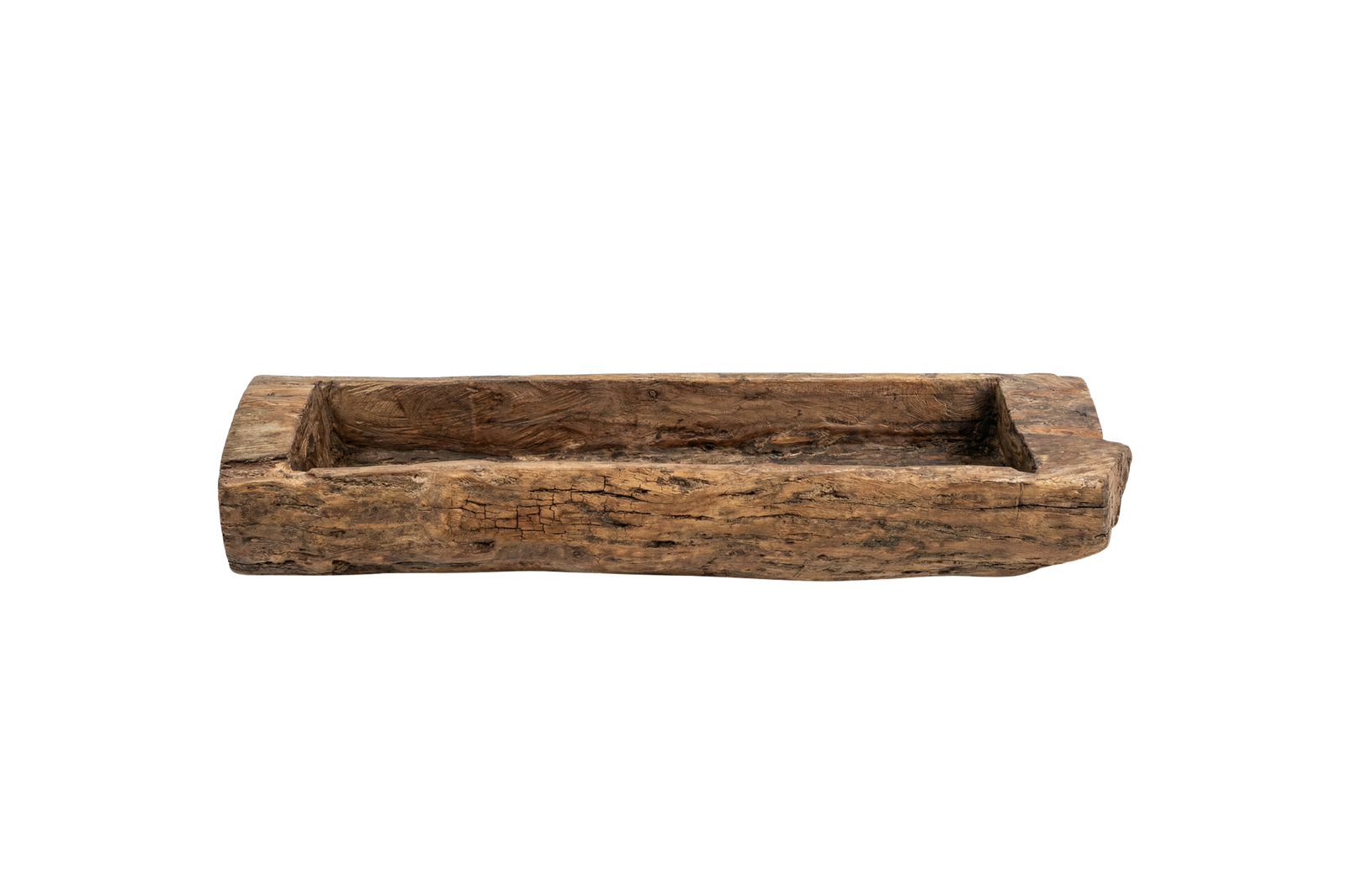 פריט זה הוא יצירת טבע שנשתמרה בזמן. השוקת נחצבה באופן ידני וגס מתוך גזע עץ שלם ומאורך, ושימשה במקור כשוקת האכלה לצאן או לאחסון תבואה באסמים כפריים. המרקם שלה מחוספס ופראי, מלא בבקיעים טבעיים, סימני גרזן וגווני עץ משתנים שבין אפור-סחף לחום-אדמה.